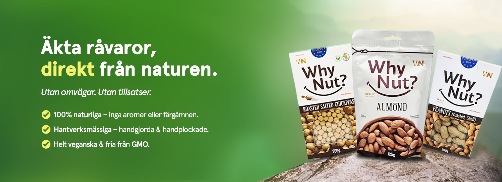 Odkryj moc natury w każdym kęsie! Produkty Why Nut? są wypełnione czystymi, ręcznie zbieranymi orzechami, nasionami i herbatami – bogatymi w składniki odżywcze, pełnymi smaku i bez szkodliwych dodatków. Od zdrowych dla serca migdałów po herbaty bogate w antyoksydanty, każde opakowanie zostało zaprojektowane tak, aby zapewnić Ci naturalną energię, świeżość i jakość, której możesz zaufać. Czyste. Zdrowe. Autentyczne – oto Why Nut.